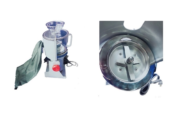 TJF溢流微粉刀式粉碎機由投料口、集料罐、粉碎室、高速電機等部位組成。樣品物料從投料口進入粉碎室,被高速旋轉的刀片(每分鐘可達22000轉)撞擊并粉碎,另外刀片的高速旋轉也引起空氣氣流的流動,從而把粉碎后的物料帶到粉碎罐中,氣流經濾袋排出,完成樣品的粉碎。