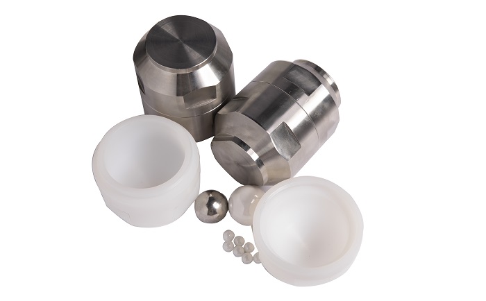 內嵌研磨罐外部為304不銹鋼材質,內部嵌套可為瑪瑙、氧化鋯、PTFE材質,這種研磨罐不易被摔壞,內部又可防止樣品被污染,既能干法研磨,也可濕法研磨,還可預冷凍研磨。